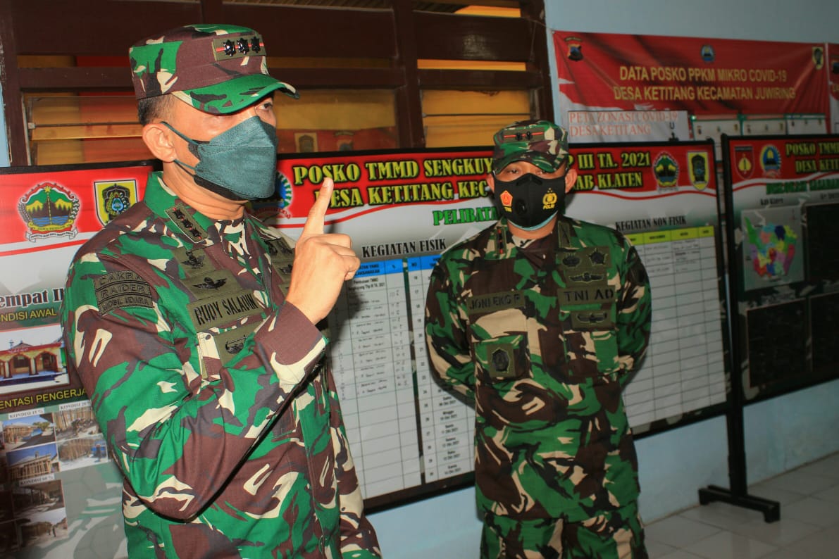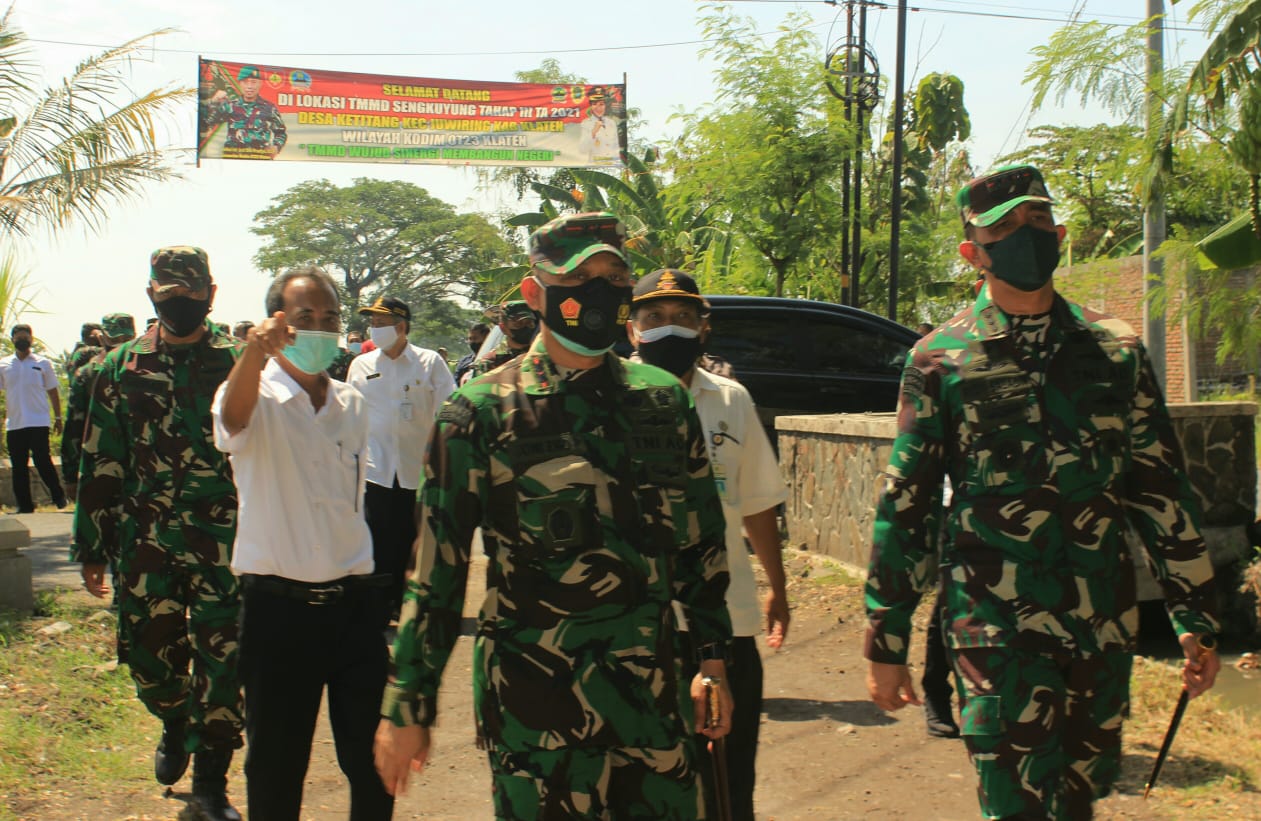 Klaten – Komandan Korem 074 Warastratama Kolonel Inf Rudy Saladin, M.A. meninjau pelaksanaan (TNI Manunggal Membangun Desa) TMMD Sengkuyung Tahap III Kodim 0723 Klaten di Desa Ketitang Kecamatan Juwiring Kab Klaten. Rabu (22/09/21)