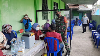 Guna melancarkan dan mengamankan selama pelaksanaan pemberian vaksin Covid-19 dosis 3 tersebut Babinsa melakukan pendampingan dalam kegiatan tersebut.
