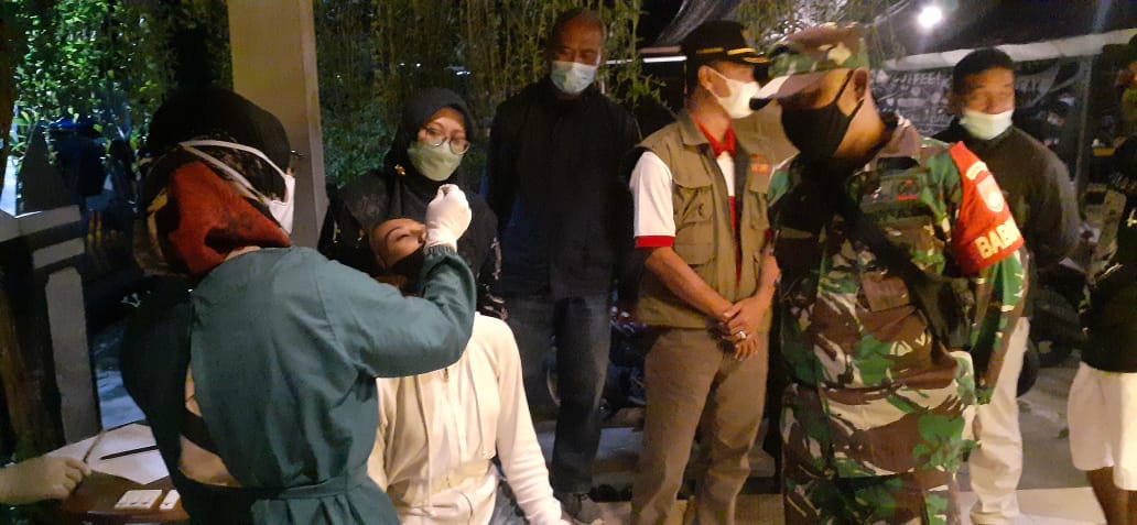 Danramil bersama Muspika Trucuk Laksanakan Patroli Gabungan Penegakan Prokes dan Swab Antigen Secara Acak